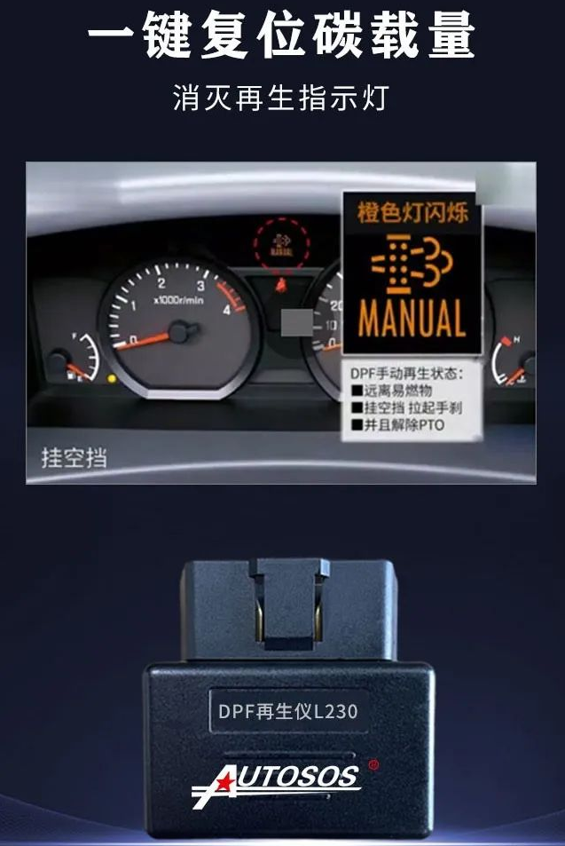 第三種服務(wù)再生,當(dāng)在車輛上無(wú)法執(zhí)行駐車再生時(shí),司機(jī)師傅可以選擇使用隨身攜帶的L230 DPF再生儀進(jìn)行一鍵再生,對(duì)于碳載量超標(biāo)無(wú)法執(zhí)行再生的可選擇執(zhí)行碳載量復(fù)位后再生。